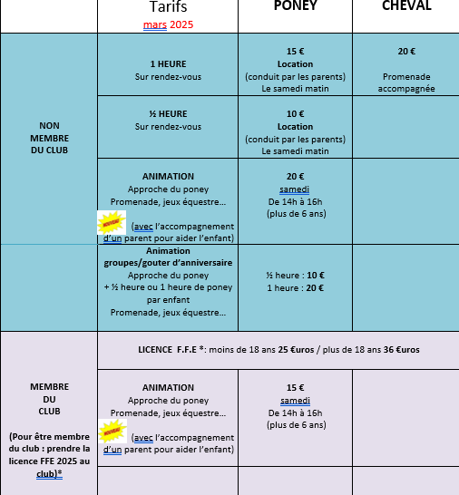 la "Location poney" : conduits par les parents se fera les samedis matin